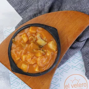 Delicioso filete blanco, filete de salmón, camarones, calamar blanco, palmitos de cangrejo; todo gratinado al estilo El Velero. Acompañado de arroz y verdura.
